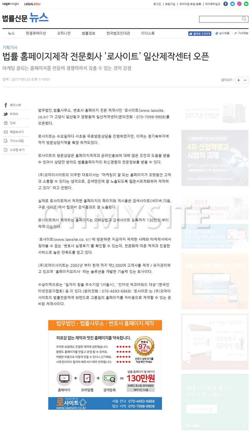 법률 홈페이지제작 전문회사 로사이트의 새로운 소식과 제작 노하우를 법률신문 기사로 만나볼까요? ^^